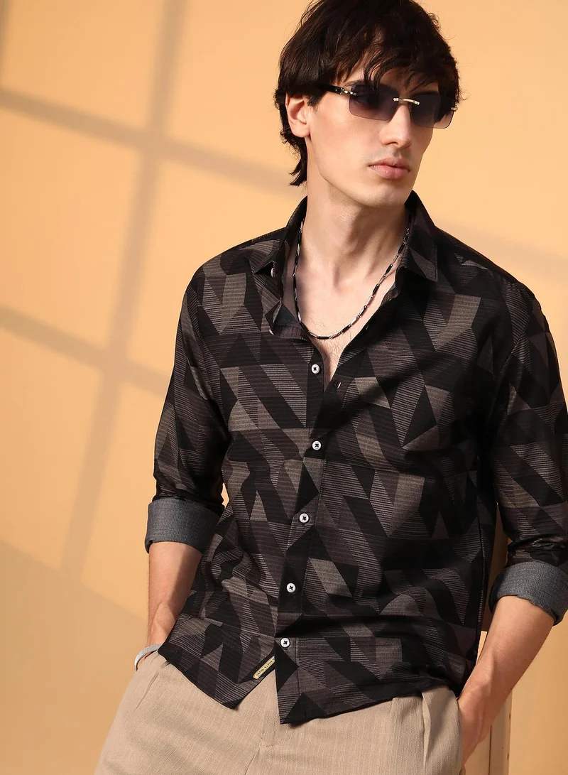 Men's Black & Grey Geometric Aztec Print Shirt