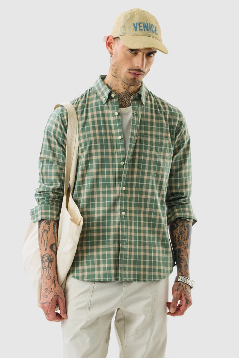 Men Slim Fit Checkered Full Sleeves Spread Collar Casual Shirt