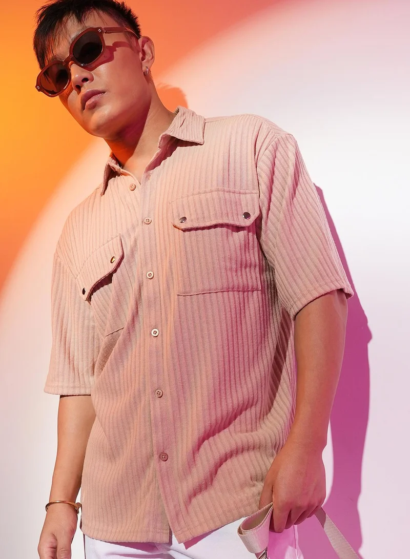 Men Boxy Fit Striped Cutaway Collar Half Sleeves Shirt