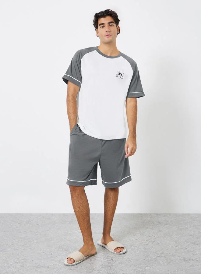 Styli Slogan Print Crew Neck T-Shirt and Shorts Pyjama Set