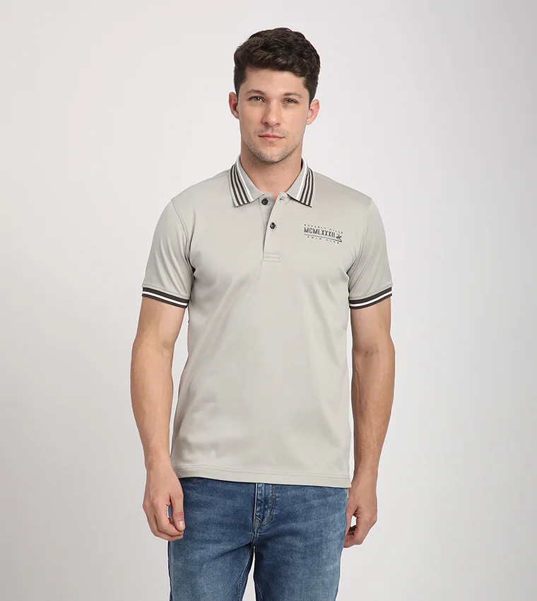 Grey Polo T-Shirt for Men, Regular Fit, Cotton Classic
