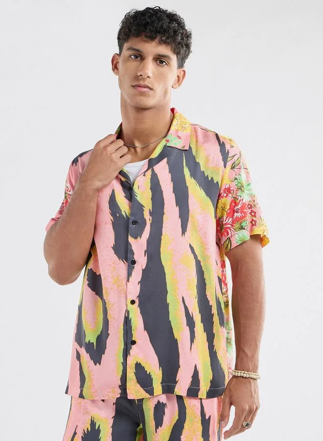 Regular Fit Dobby Textured Shirt with Camp Collar and Short Sleeves