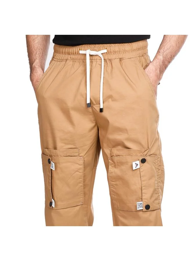 Khaki Weaving Jogging Fit Casual Cotton Blended Trousers