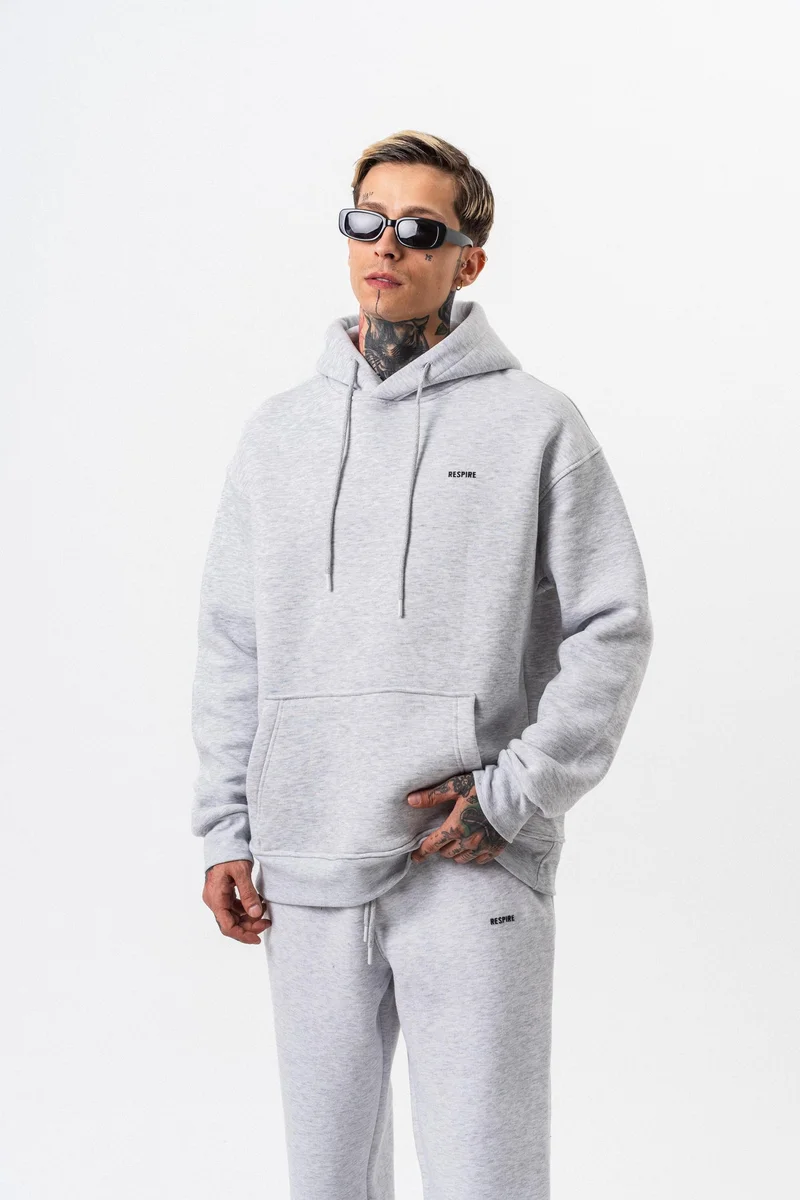 Men’s Respire Lettering Detail Hooded Basic Oversize Hoodie Snow Melange