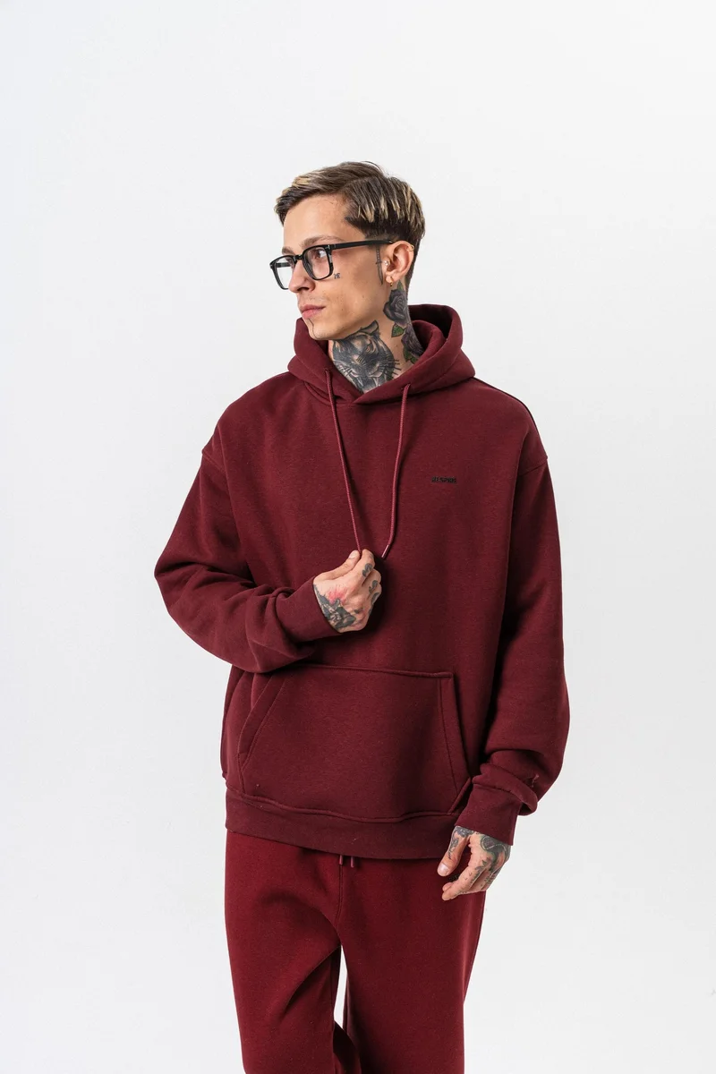 Men’s Minimalism Series Embroidered Oversize Hoodie Burgundy