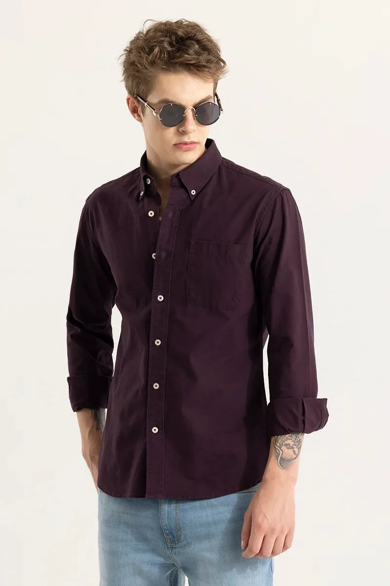 Burgundy Solid Twill Shirt
