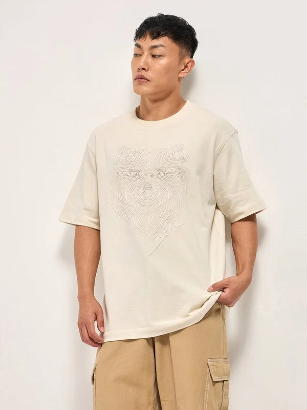 Men's White Oversize patch applique design Crew Neck T-shirt Perfect For Casual Wear, Gym, Travel, Or Layering Stylish And Versatile Essential For Every Wardrobe
