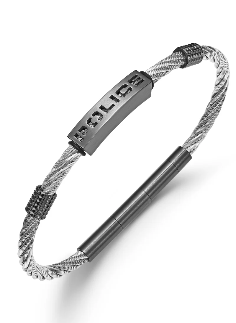 Handmade Beaded Bracelet for Men with Knitted Design and Grey Larvikite
