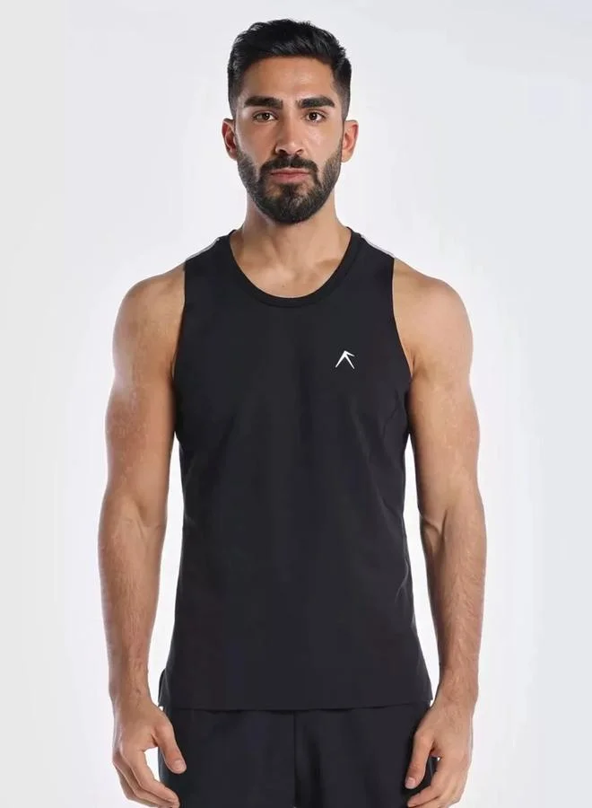 Men Black Vent Wizardry Solid Round Neck Tank T-Shirt