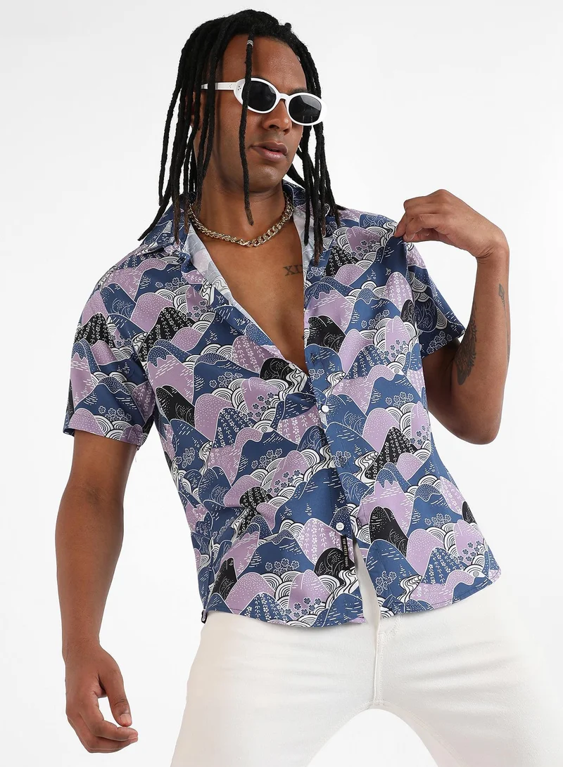 Men's Chalk White:Azure Blue Landscape Strokes Shirt