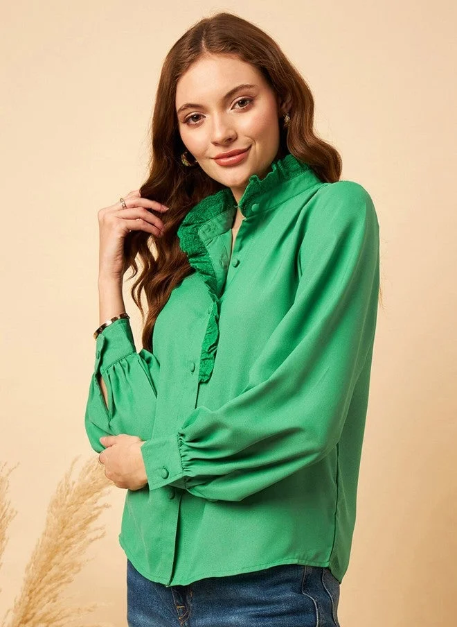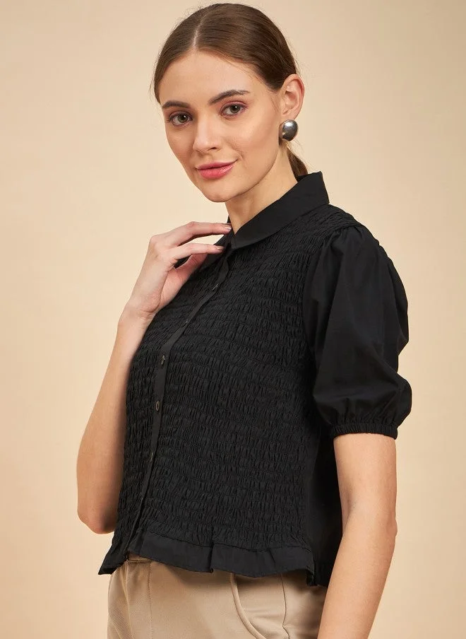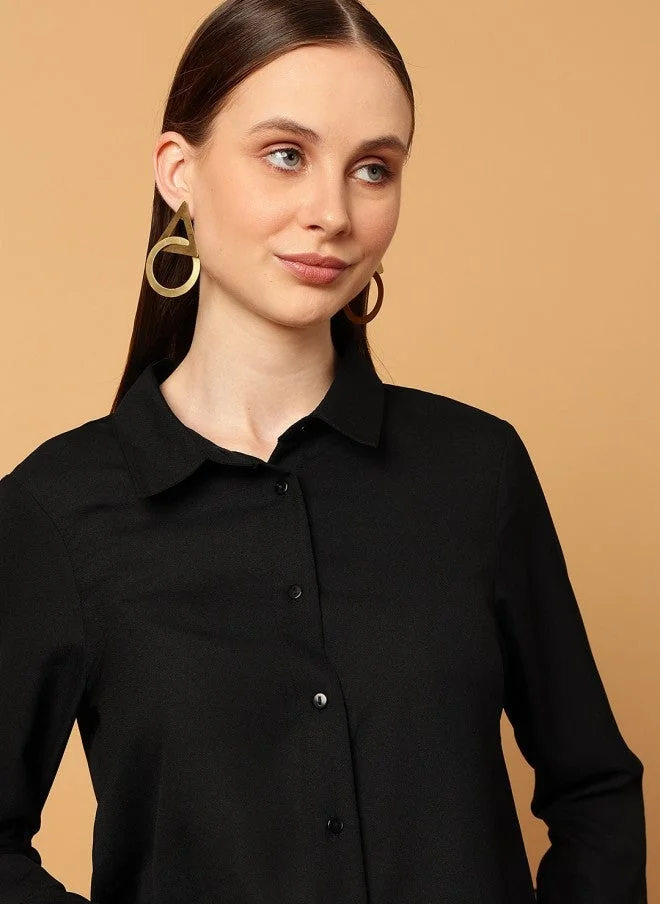 Mint Street Blue Spread Collar Casual Shirt for Women