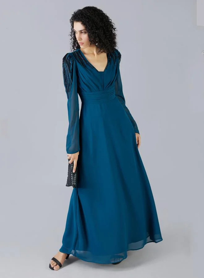Mish Embellished Georgette Maxi Dress with Slit Sleeve