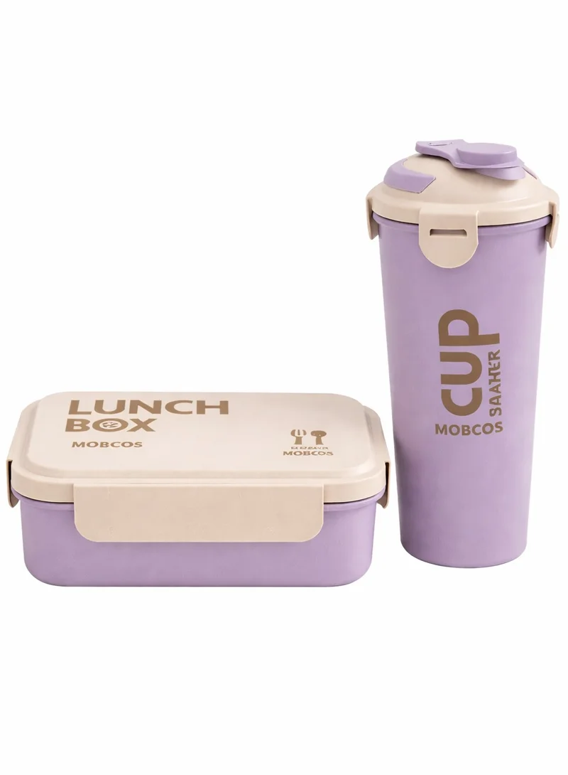 Mobcos Big Capacity 4 Compartment Leak Proof Tiffin Food Container Microwave Safe Bpa Free Kids And Adults Water Bottle and Lunch Box Set (Purple)