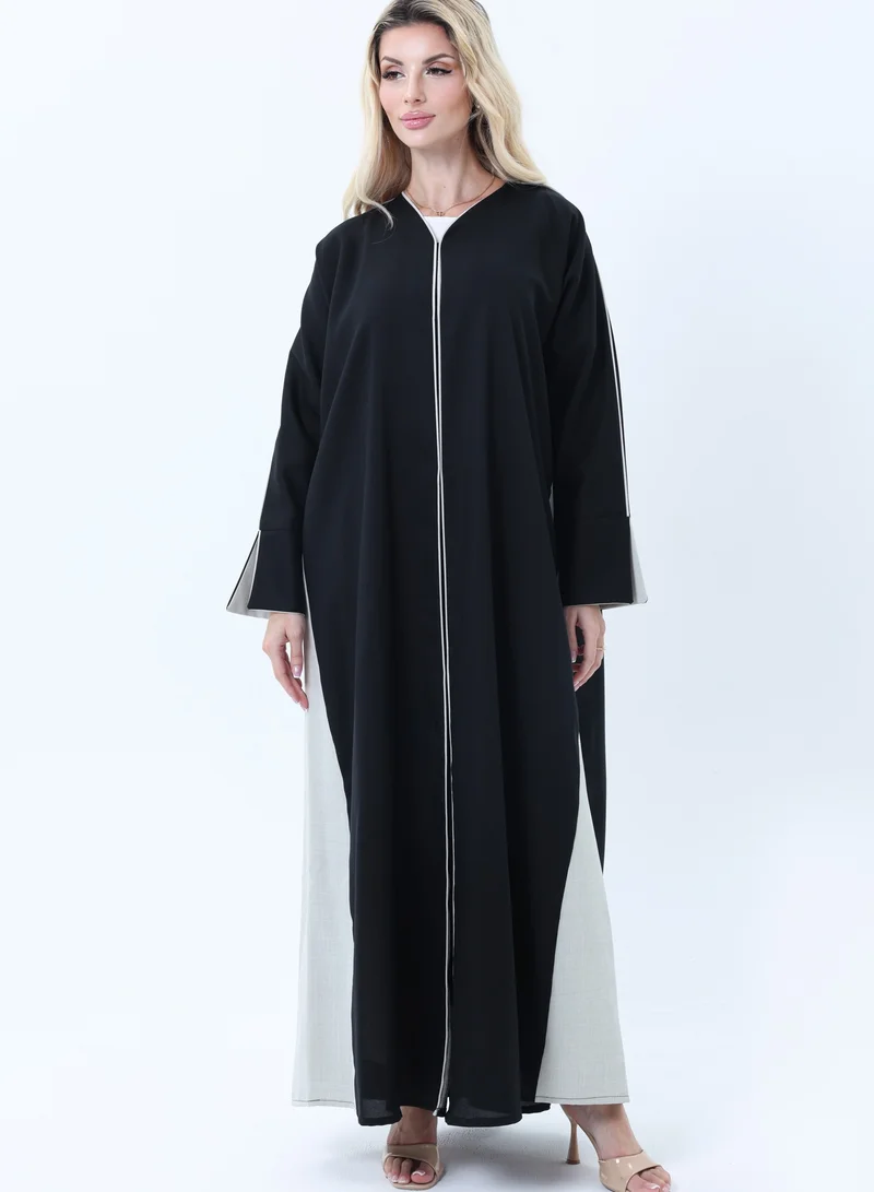 Two-Tone Colorblock Melange Abaya with Contrast Piping and Slit Sleeves