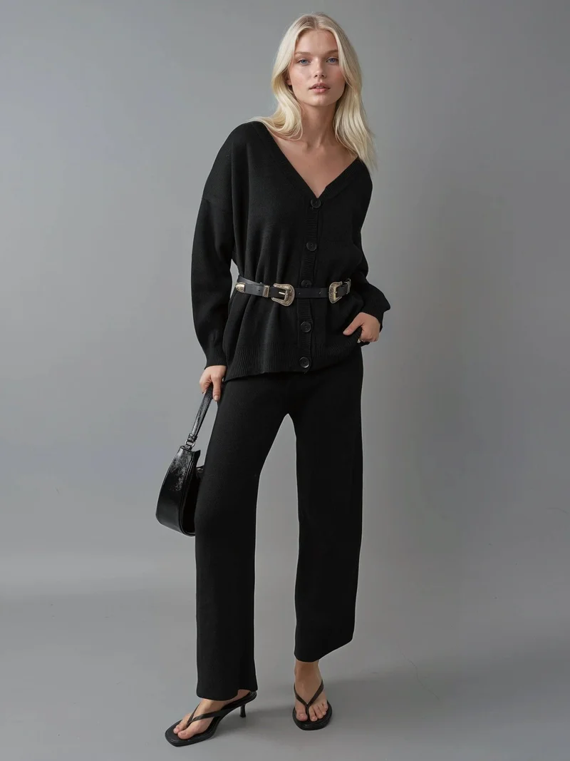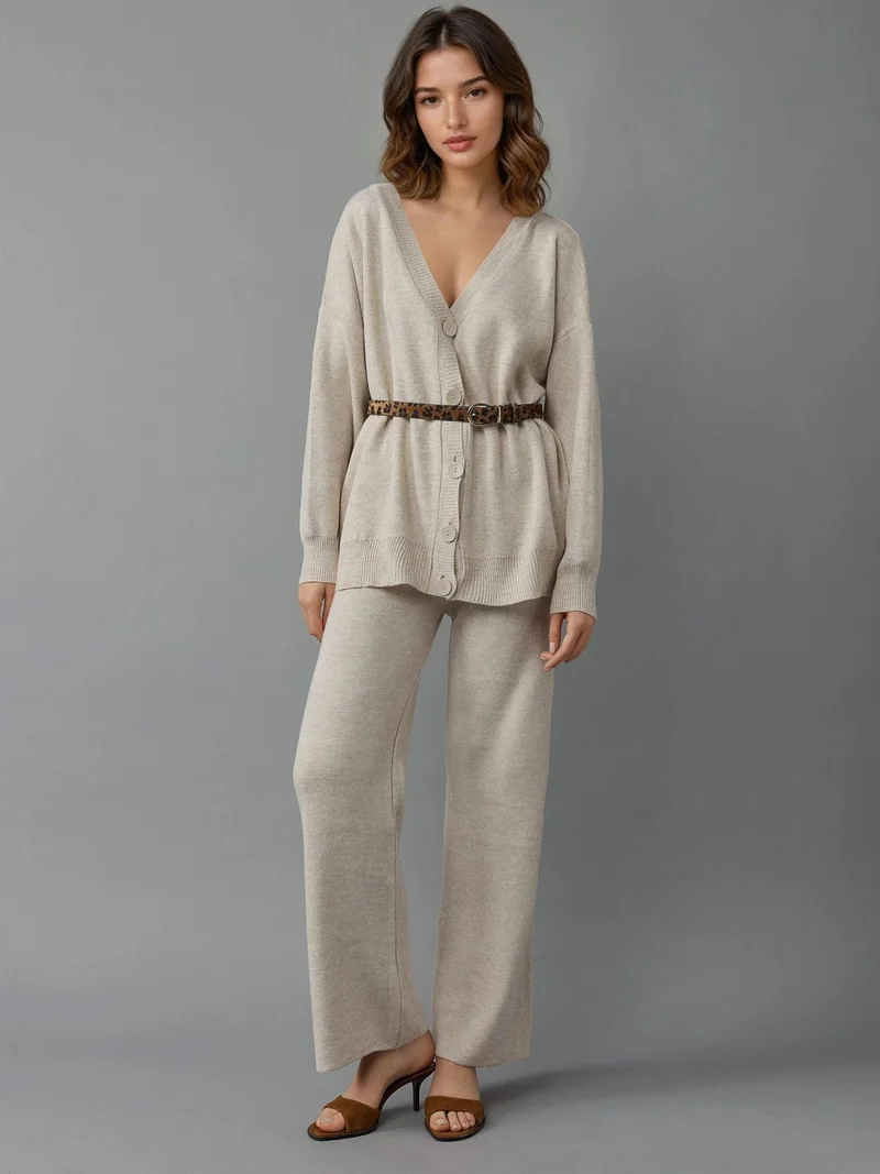 MY FASHION V-Neck Cardigan and Wide Leg Pants Knitwear Set