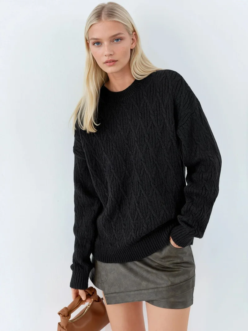 MY FASHION Oversized Textured Knit Sweater with Crew Neck