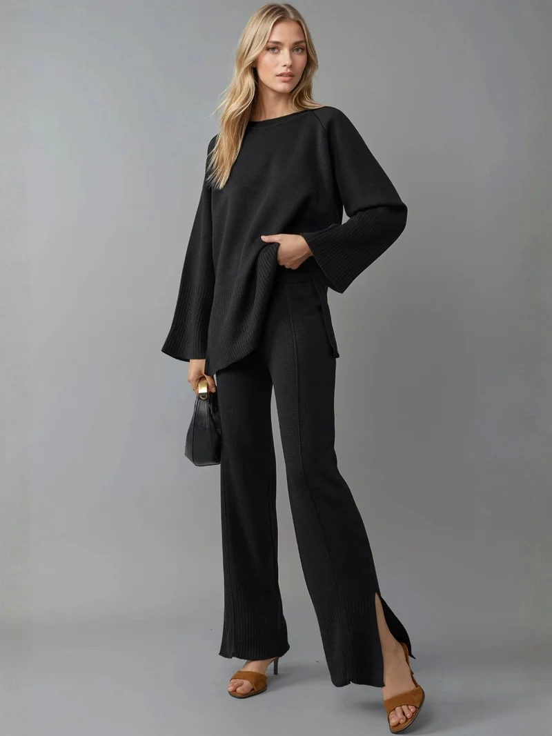 MY FASHION Oversized Sweater & Slit Detailed Pants Knit Co-ord Set