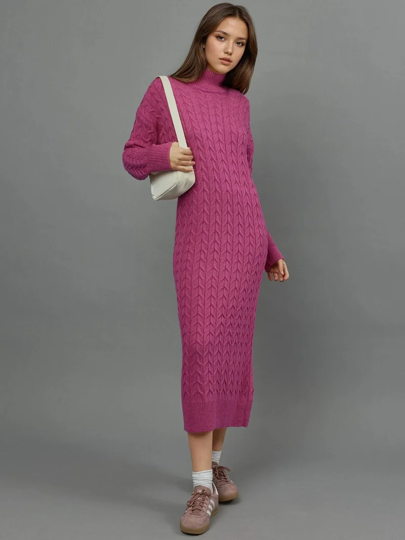 MY FASHION Long Sleeve Turtleneck Hair Braid Knit Dress