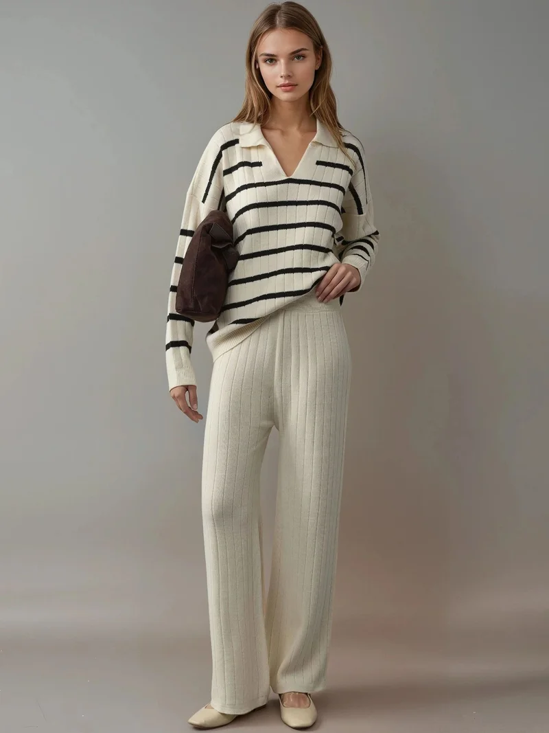 MY FASHION Striped Sweater & Pants Knitwear Co-ord Set