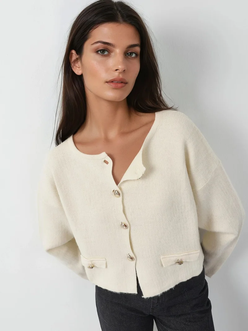 MY FASHION Fitted Ribbed Crop Sweater with Buttons