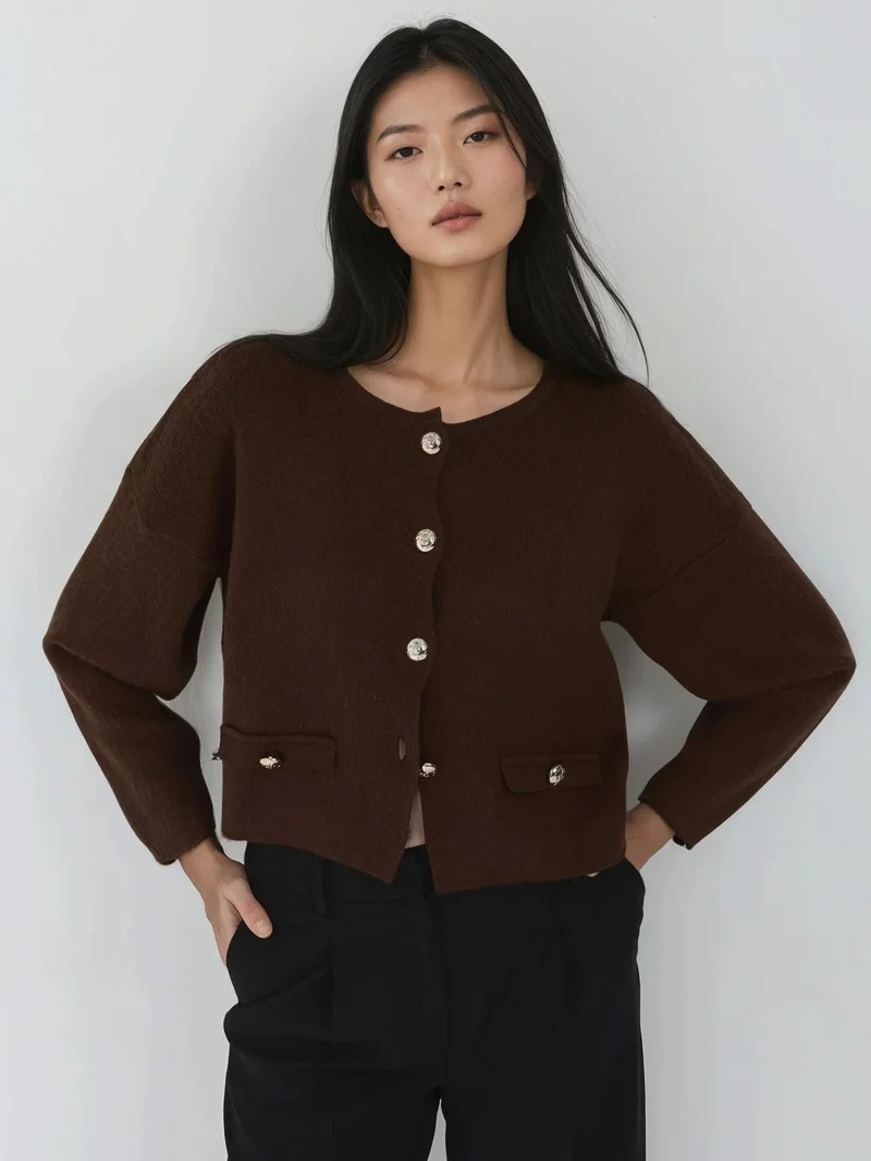 MY FASHION Pocket Detailed Knit Cardigan with Button Closure