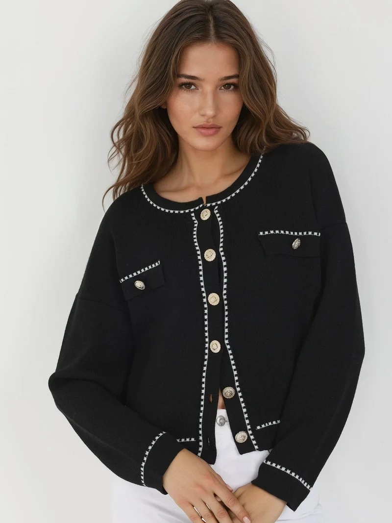 MY FASHION Ribbed Knit Cardigan with Button Closure