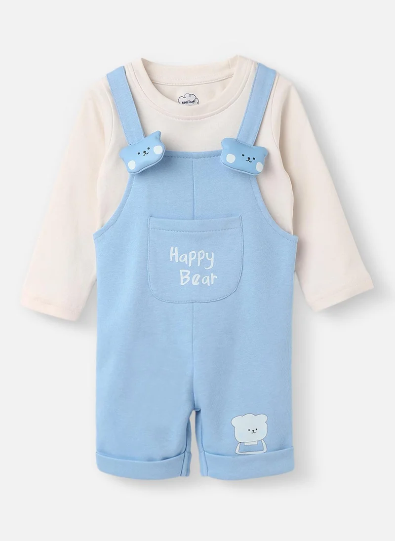 Nautinati Infants Animal Embroidery Cotton Dungaree with Striped T-shirt