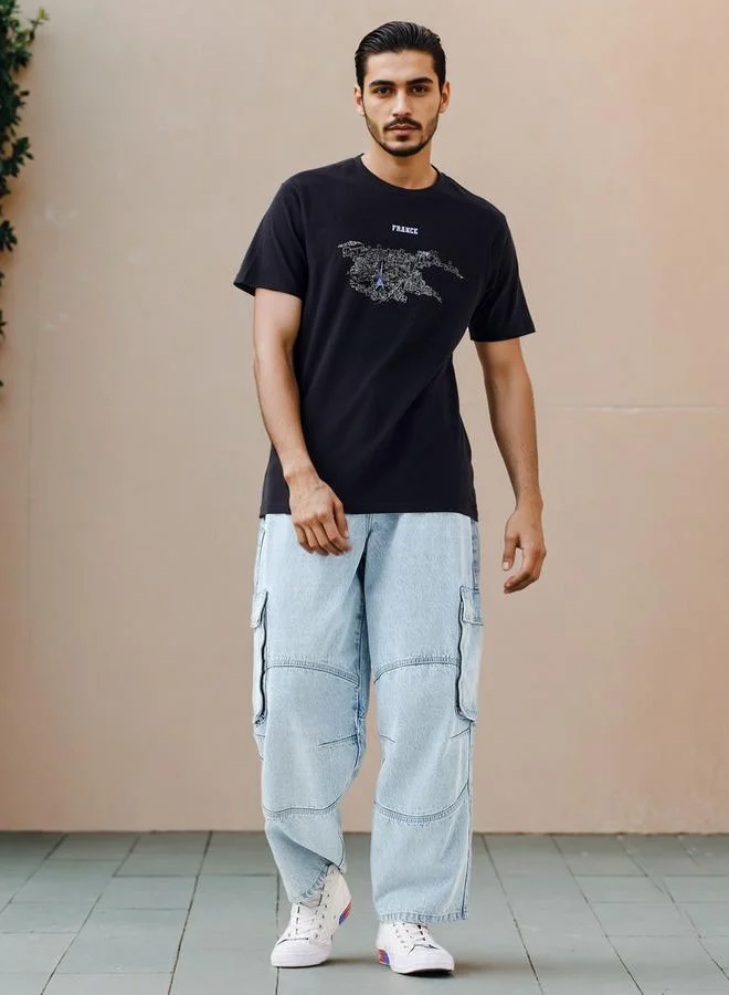 Men Relaxed Fit Graphic Printed Crew Neck Half Sleeves T-Shirt