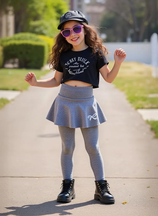 Solid Bow Printed Skirt with Leggings Set