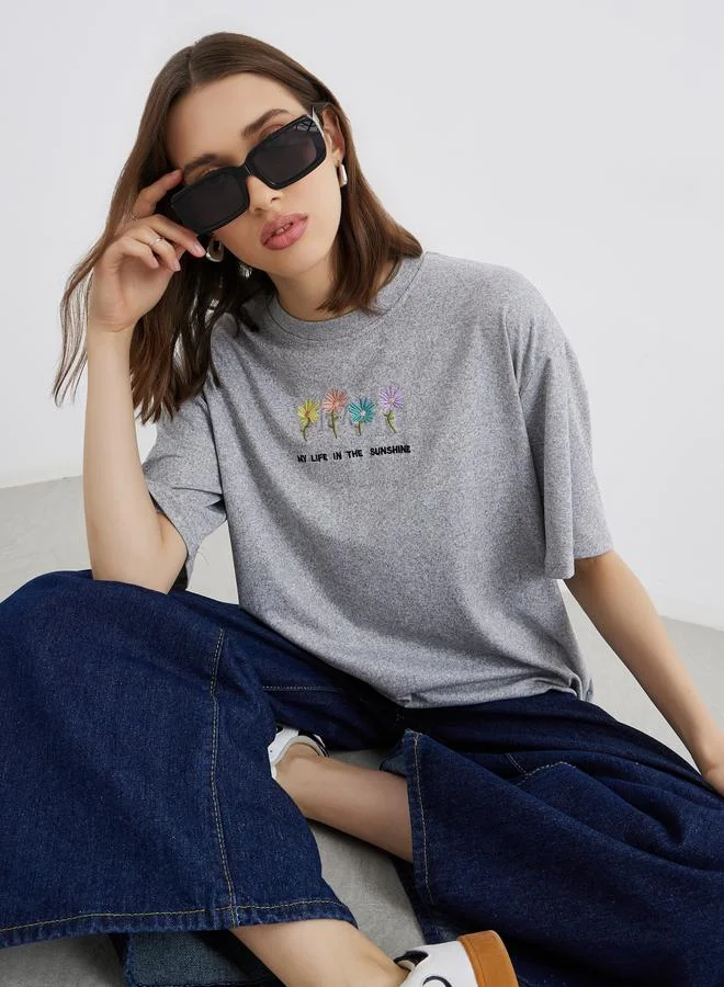 Floral Embroidery Detail Short Sleeves T-Shirt