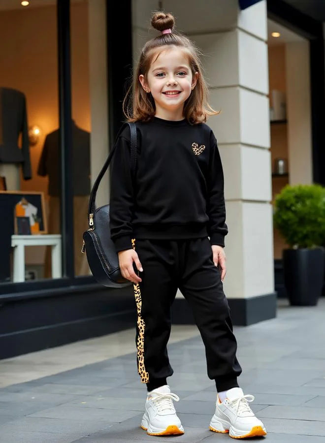Take Two Teens Black Graphic Print Sweatshirt and Joggers Set