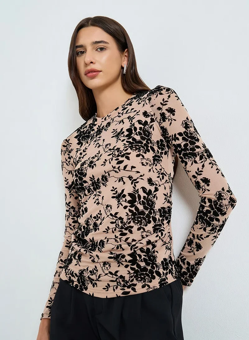Leaf Printed Round Neck Top