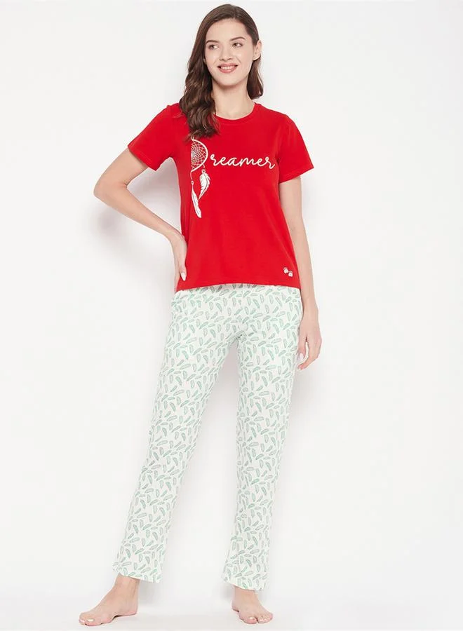Premium Cotton Bliss Printed T-Shirt and Pyjama Set By Lazzycat