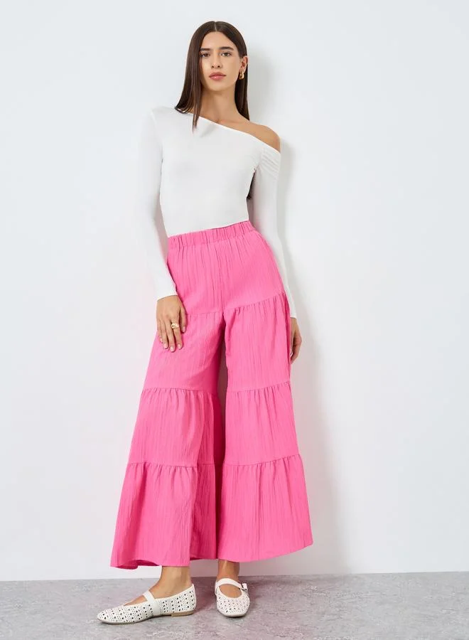 Take Two Solid Mid Rise Relaxed Fit Pants with Pintuck Detail