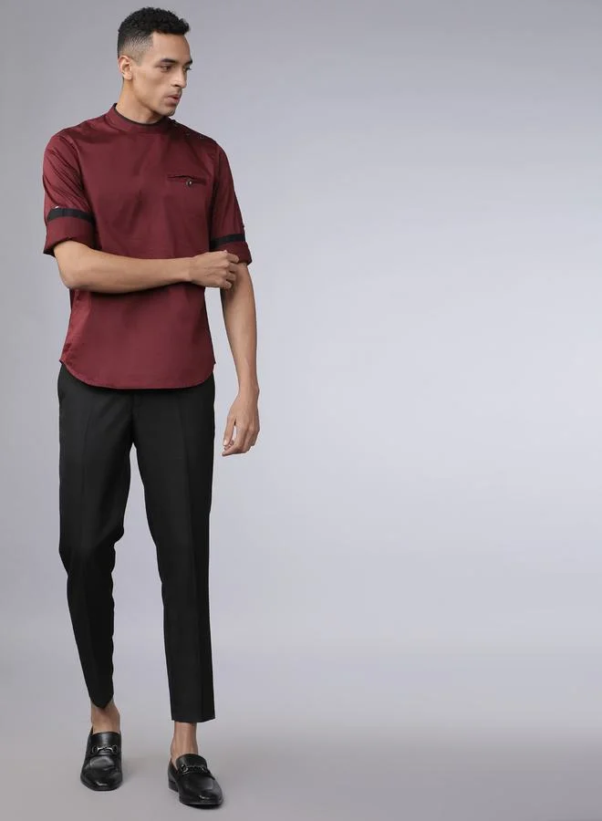HIGHLANDER Mandarin Collar Slim Fit Shirt with Chest Placket