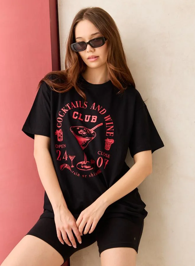 Pink Graphic Oversized T-Shirt - 100% Cotton