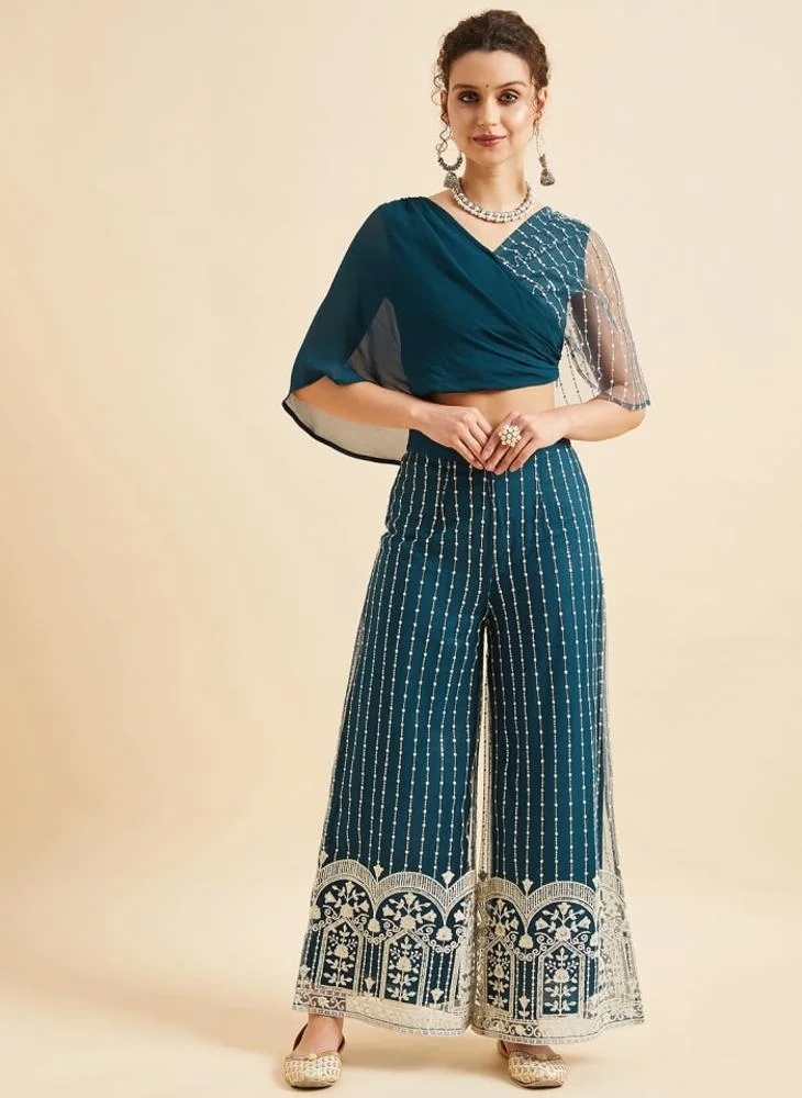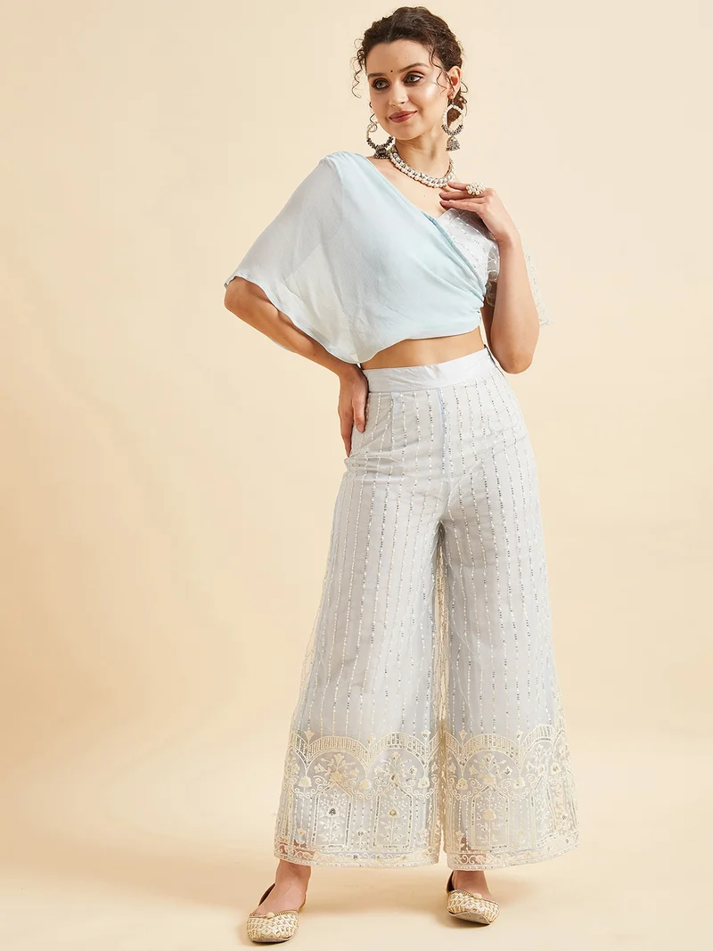 PANIT Net Embroided Crop Top with Palazzo Co-Ords Set
