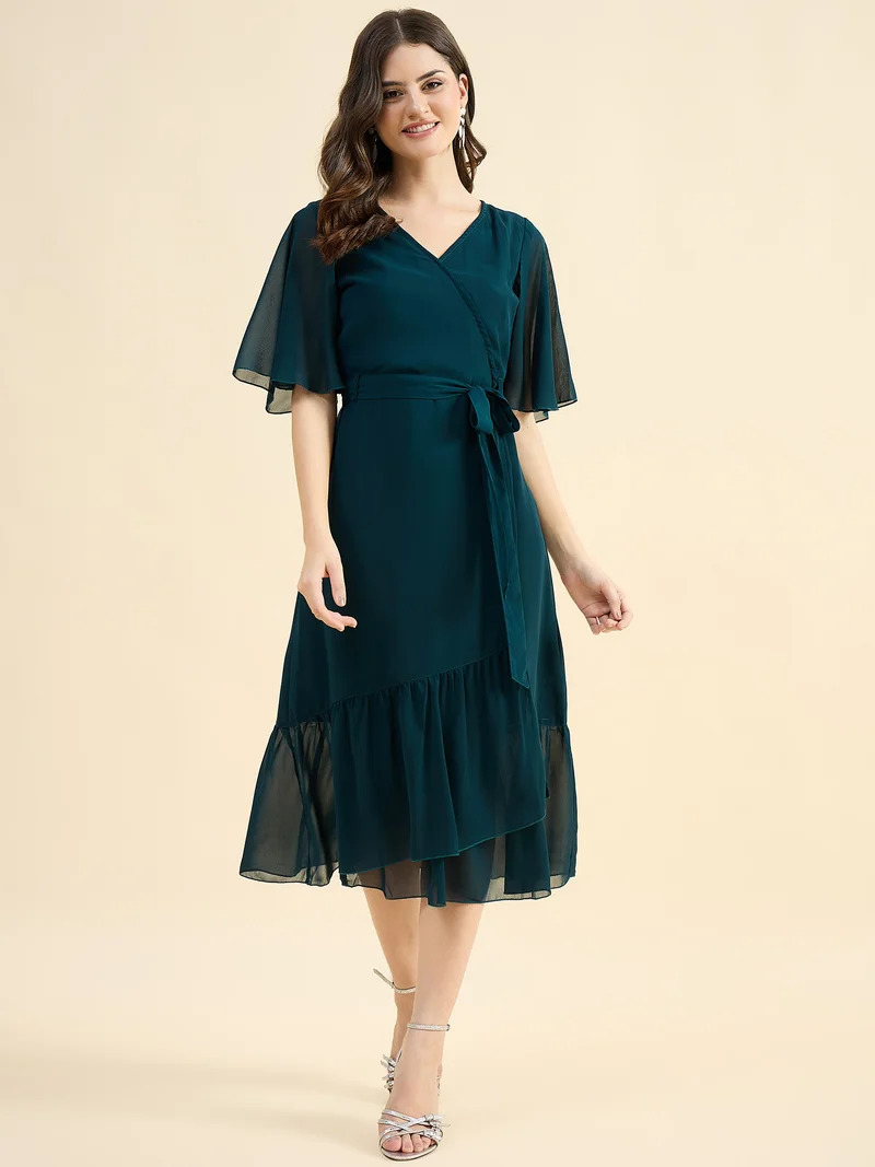 PANIT Valentino wrap Bodycon knee length dress - Teal Green