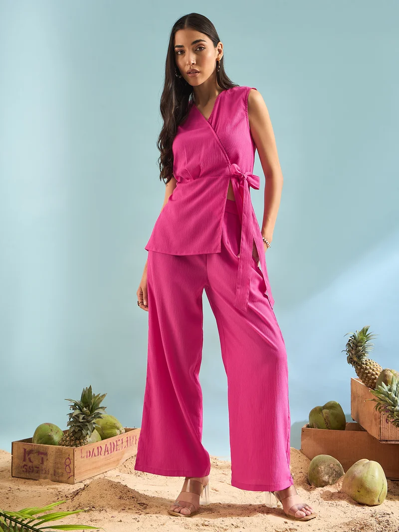 PANIT Airflow Wrap Top With Trouser Co-ord Set - Magenta