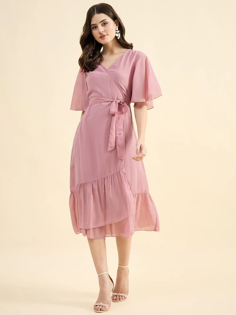 PANIT Purple Valentino Wrap Bodycon knee Length Dress - Purple