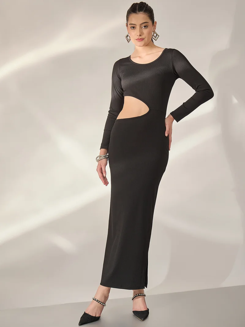 PANIT Ribbed Cut-out Bodycon Maxi dresss - Black