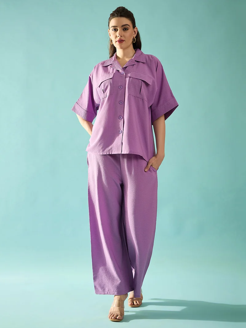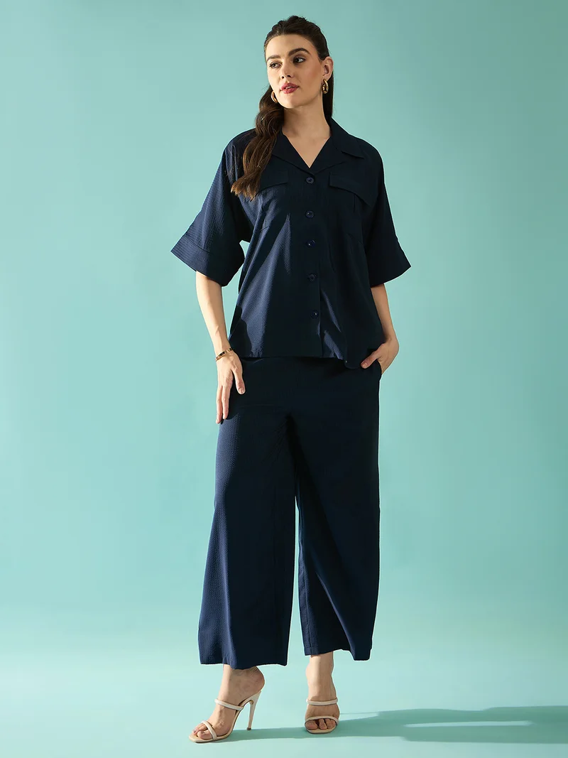 PANIT Seersucker Oversized Loose Fit Shirt with Trouser