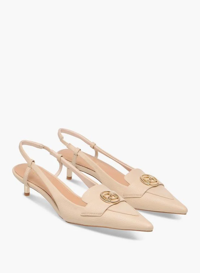 Metallic Accent Slingback Shoes With Kitten Heels