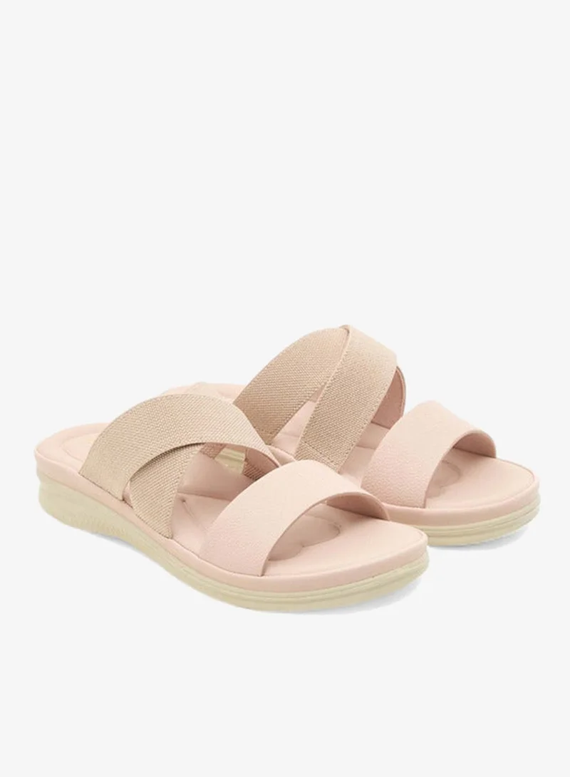 Women's Textured Slip-On Cross Strap Sandals with Flat Heels