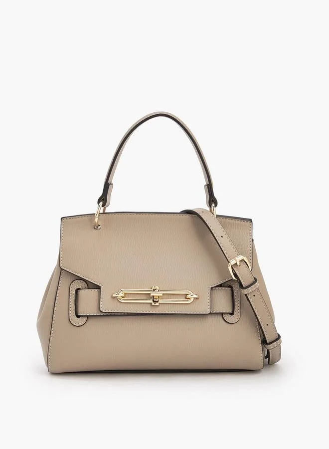 Monogram Print Bucket Bag with Detachable Strap and Drawstring Closure