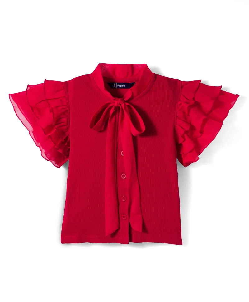 Pine Kids Knit Half Sleeves Solid T-Shirt - Red