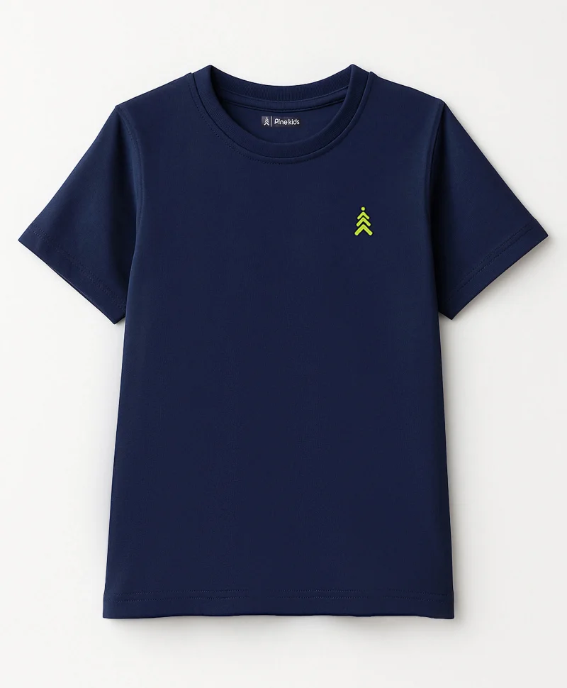 Pine Kids Cotton Knit Half Sleeves T-Shirt with Beautiful Text Print - Navy Blue