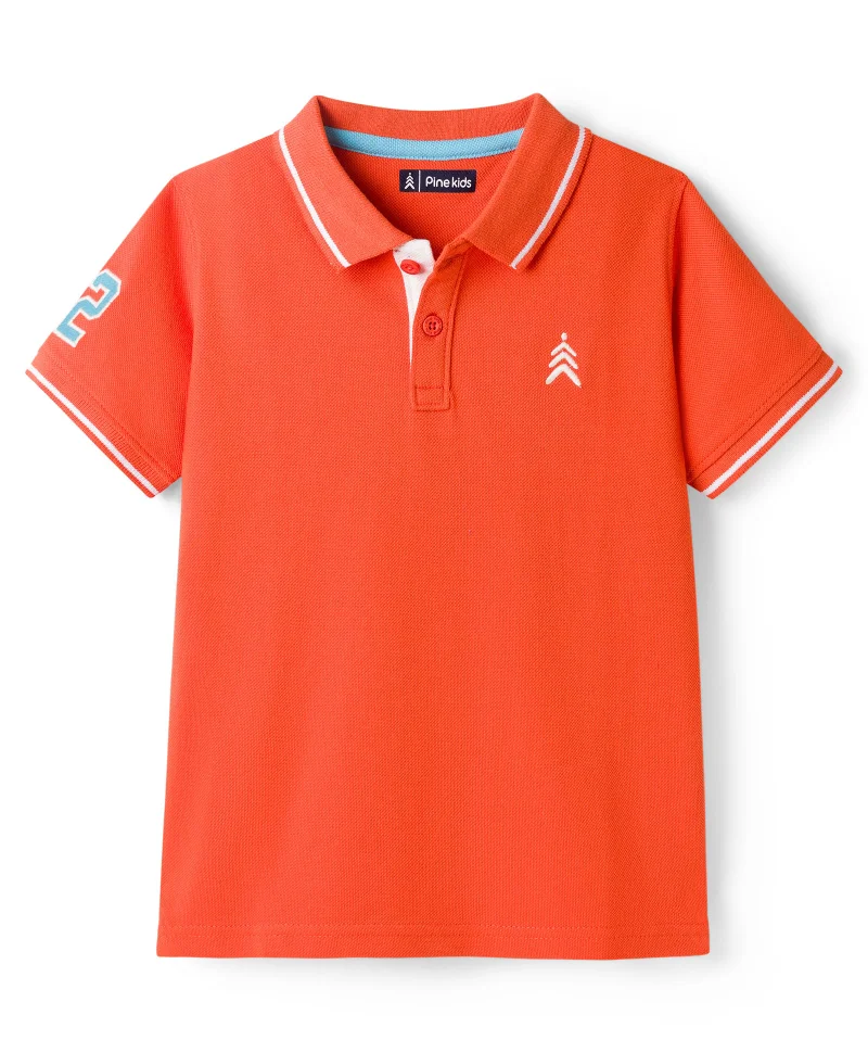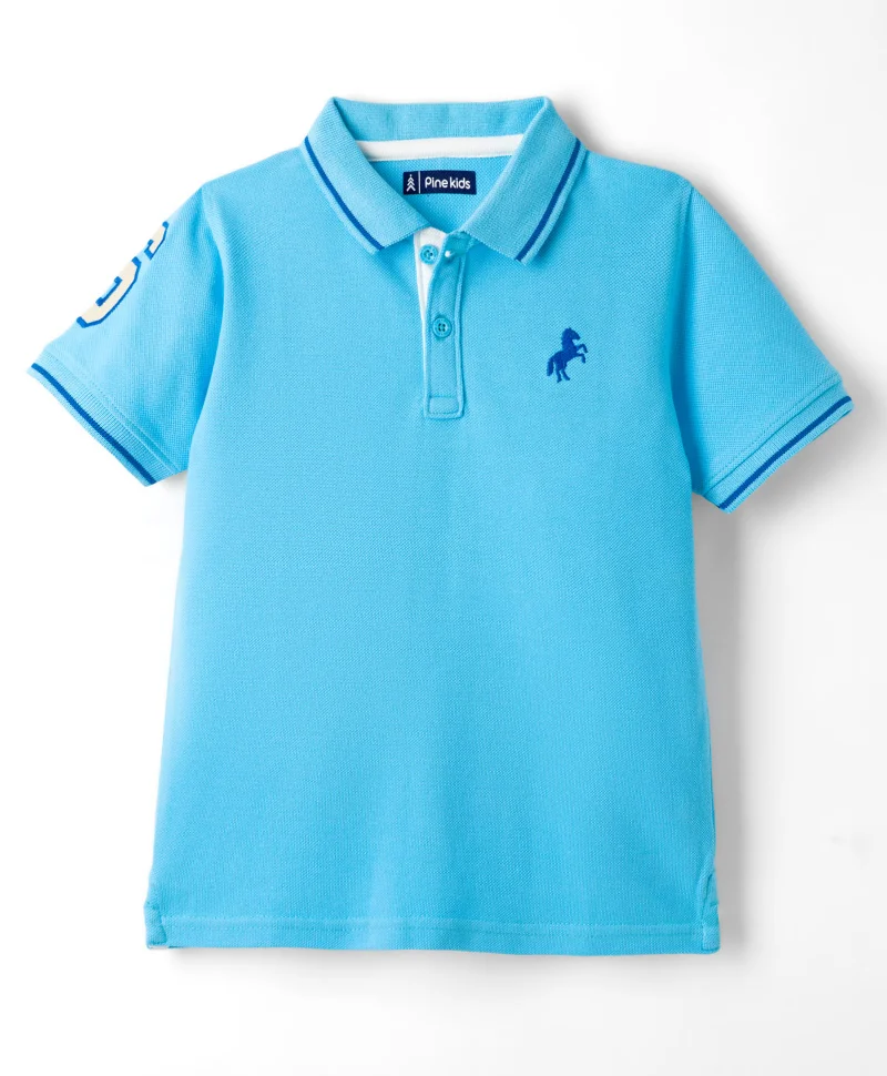 Pine Kids Cotton Knit Half Sleeves Polo T-Shirt & Text Embroidery - Light Green