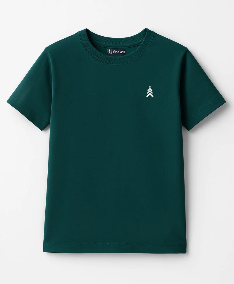 Pine Kids Cotton Knit Half Sleeves T-Shirt with Text Print - Green