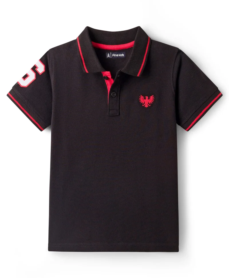 Pine Kids Cotton Knit Half Sleeves T-Shirt With Brand Logo Print - Black